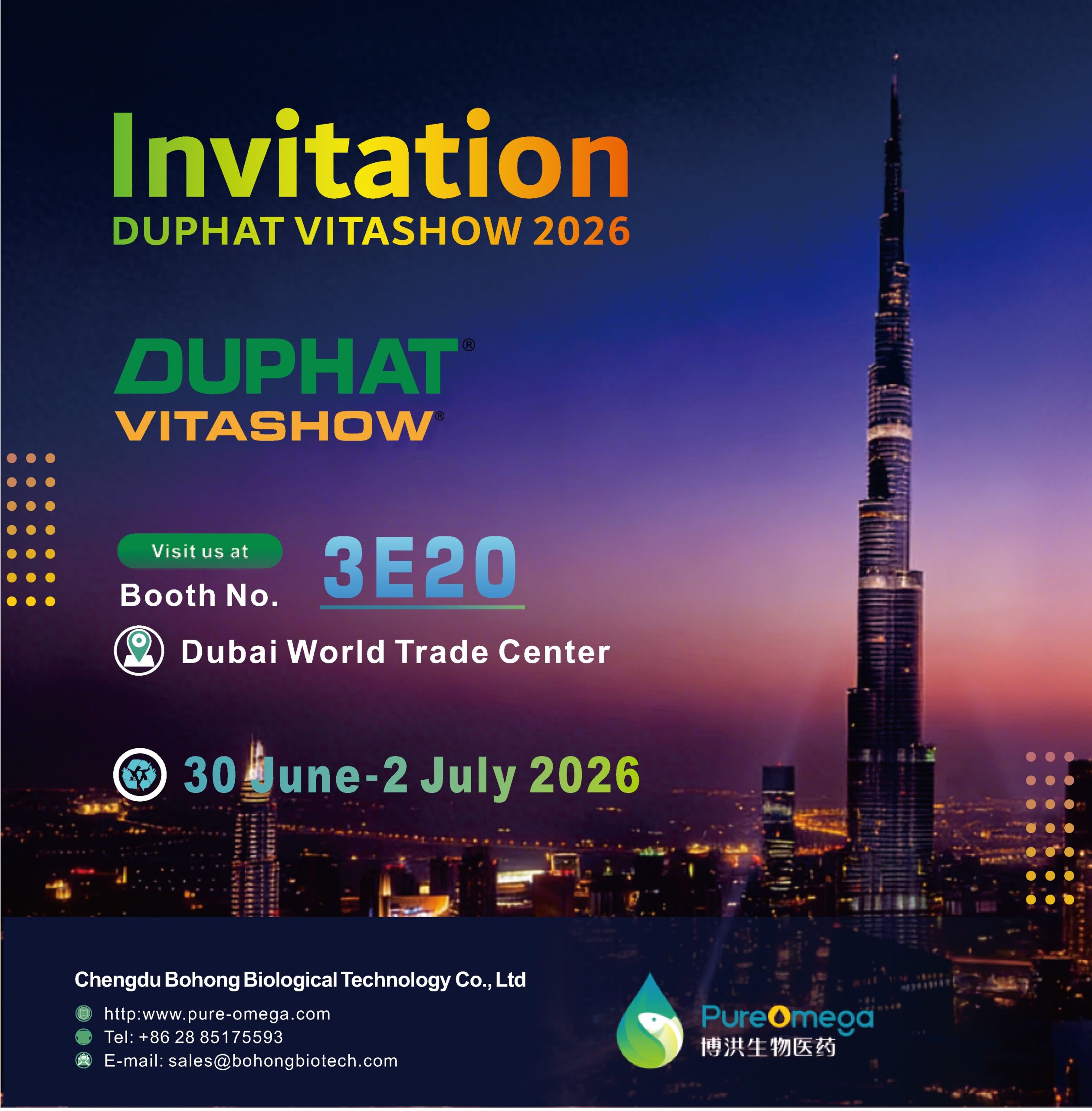 Welcome to DUPHAT VITASHOW at Dubai World Trade Center, we are always here (Booth 3E20) and looking forward to meeting and discussing with you.